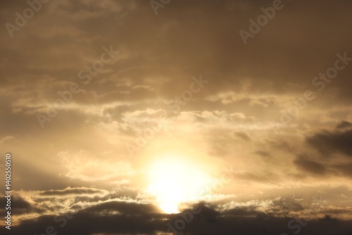 © New Africa, Naklejka premium Picturesque view of beautiful sky with setting sun and clouds