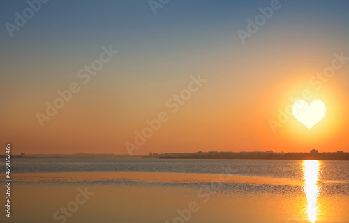 Obraz premium Picturesque view of beautiful sunset on riverside