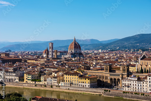 © Gur, Obraz premium Picturesque view of Florence - Duomo Cathedral and Arno River from Michelangelo Square, Italy. Selective focus.