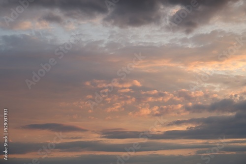 Obraz premium Picturesque view of sunset sky with beautiful clouds