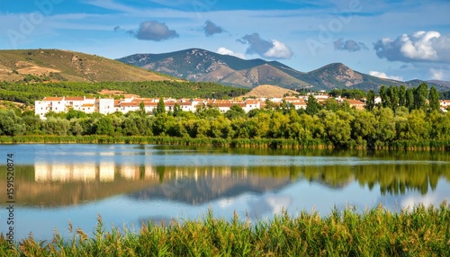 Fototapeta premium Picturesque village reflected in a tranquil lake