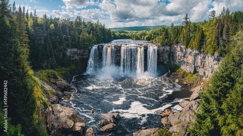 © Ahmad, Fototapeta premium Picturesque waterfall cascading into a rocky basin.