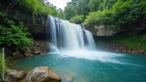 © Cloudy, Obraz premium Picturesque Waterfall Cascading into Tranquil Pool