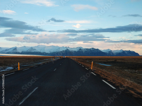 Fototapeta premium Picturesque winter landscape of Iceland. The perfect road to perspective