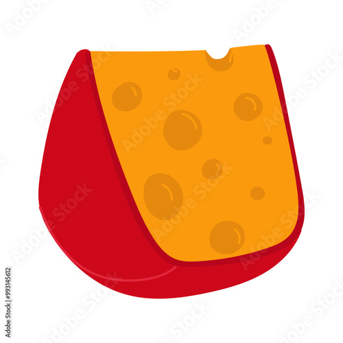 © Svetlana, Fototapeta premium piece of cheese in red wax in a flat style stands on its side. Vector illustration of the triangular shape of a dairy product. isolated product on a white background. Cute simple print drawn sideways