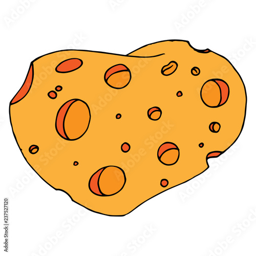 Obraz premium Piece of cheese with holes icon. Vector of cheese with big holes. Hand drawn...