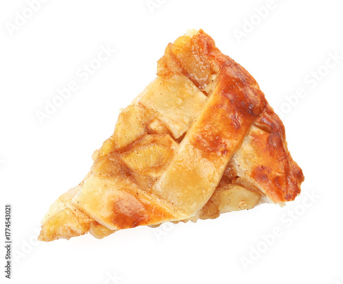 Naklejka premium Piece of delicious homemade apple pie isolated on white, top view