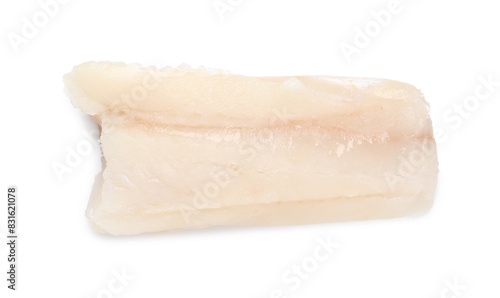 Fototapeta premium Piece of raw cod fish isolated on white, top view