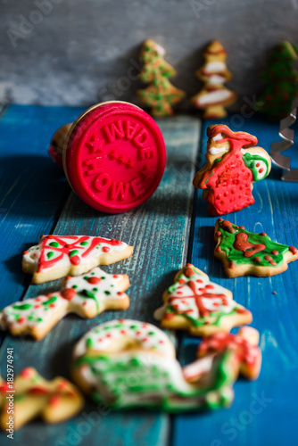 Fototapeta premium Pieczenie ciasteczek świątecznych. Tło wakacje.