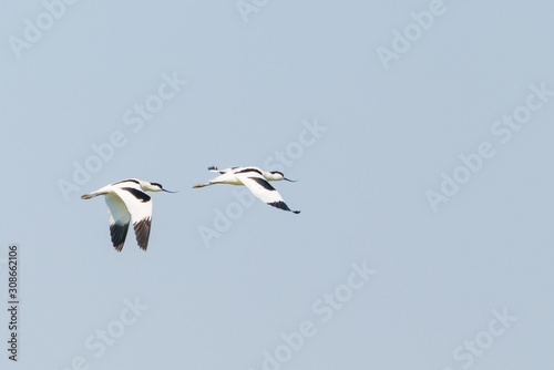 © Chris, Obraz premium Pied Avocet (Recurvirostra avosetta) in flight, taken in the UK