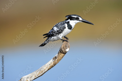 © PROMA, Obraz premium Pied Kingfisher (Ceryle rudis) at lake Maagan Michael, Israel