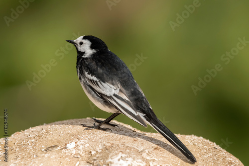 © Digital Nature , Obraz premium Pied wagtail, perched on a Toadstool in the Springtime, close up