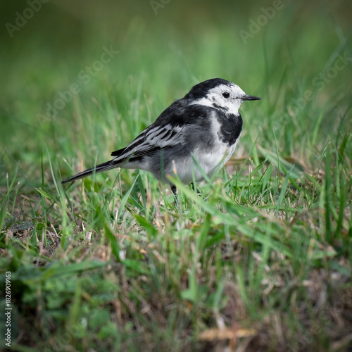 Naklejka premium Pied Wagtail Standing on Grass