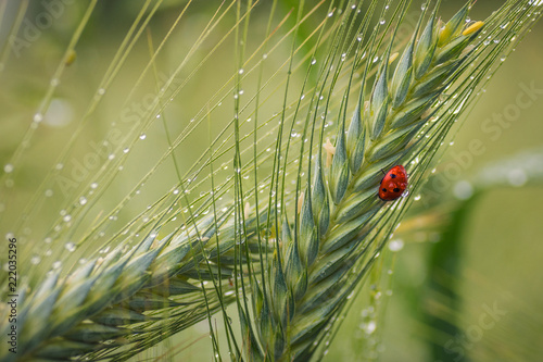 Obraz premium Piękna biedronka makro na końcówce pszenicy