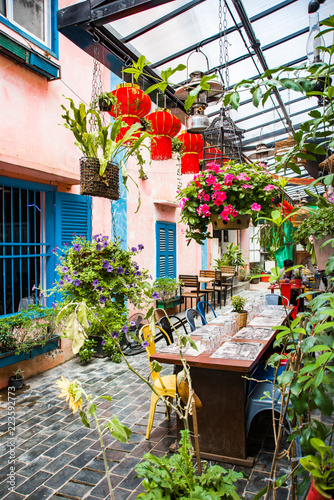 © anastasiapelikh, Obraz premium Piękna idylliczna zielona ulica w Siem Reap w Kambodży