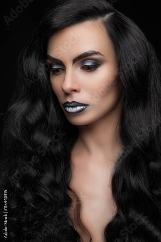 © aporubaymykh, Fototapeta premium piękna modna kobieta z długimi włosami na ciemnym tle