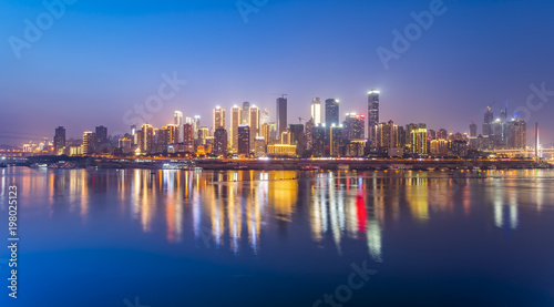 © zhouyilu, Fototapeta premium Piękna panorama miasta Chongqing w nocy