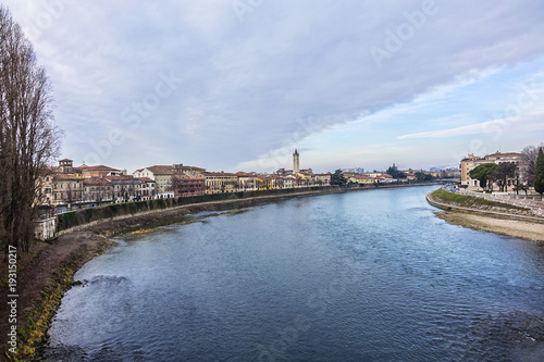 Fototapeta premium Piękna panorama nabrzeża rzeki Adige w Weronie, Włochy.