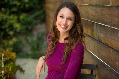 Fototapeta premium Piękna samotna kobieta o doskonałych zębach i skórze i miłym uśmiechu