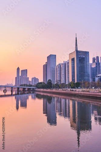 © Alex Pelikh, Naklejka premium Piękna scena zachodu słońca w mieście Guangzhou i widok na panoramę Chin