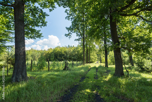 © © Jakacki, Fototapeta premium Piękna zielona droga leśna latem
