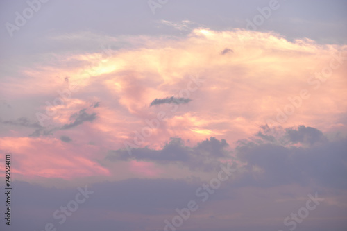 Obraz premium Piękne chmury o zachodzie słońca. Promienie słońca przechodzą przez chmury.