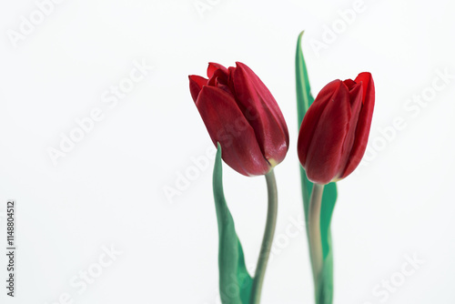 © Elżbieta Kaps, Naklejka premium Piękne czerwone tulipany na białym tle, plik png, wiosenne tło.