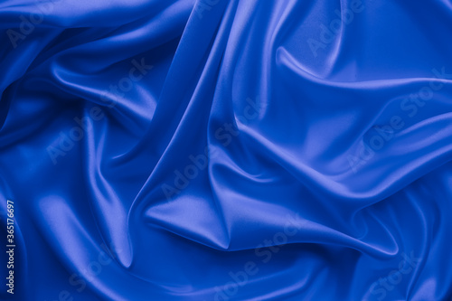 © Sindija, Obraz premium Piękne eleganckie faliste klasyczne niebieskie satynowe jedwabne tkaniny luksusowe tekstury, abstrakcyjny wzór tła.