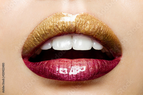Fototapeta premium Piękne kobiece usta o gradiencie od złotego do czerwonego