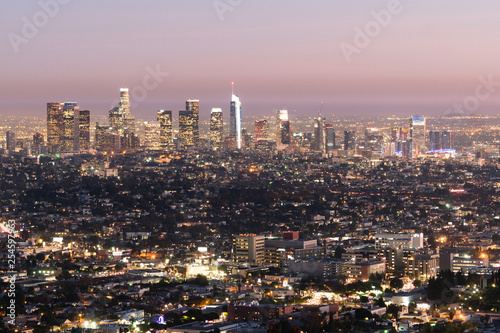 Obraz premium Piękne światło Los Angeles California Downtown City Skyline Urban Metropolis