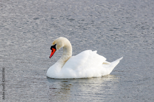 © Vladimir Zhupanenko, Obraz premium Piękny biały łabędź na powierzchni rzeki