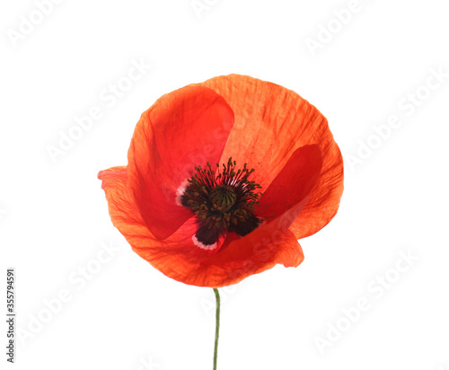 Fototapeta premium Piękny czerwony kwiat maku na białym tle
