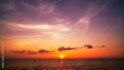 © Panya, Fototapeta premium Piękny lekki zachód lub wschód słońca na tle przyrody scenerii morza