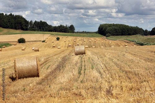 Fototapeta premium Piękny pejzaż na skoszone pole zboża.