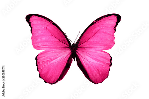 © Fotograf, Obraz premium piękny różowy motyl na białym tle