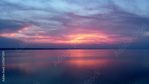 © slava2271, Fototapeta premium Piękny różowy zachód słońca z promieniami słońca nad morzem.