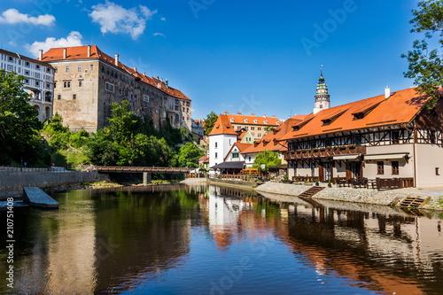 © Sergey Fedoskin, Naklejka premium Piękny widok na kościół i zamek w Cesky Krumlov w Czechach