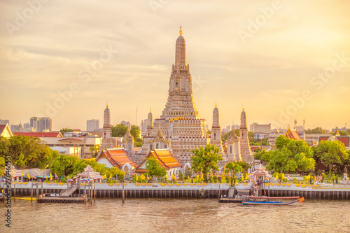 Fototapeta premium Piękny widok na świątynię Wat Arun o zachodzie słońca w Bangkoku w Tajlandii