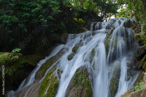 © Nailotl, Fototapeta premium Piękny widok na wodospady na Tamasopo san luis potosi w meksyku o zachodzie słońca