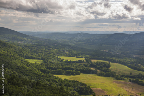 © TetyanaOhare, Fototapeta premium Piękny widok z Pinwheel Vista, New Jersey, z krajobrazem New Jersey na pierwszym planie i nastrojowym niebem w tle