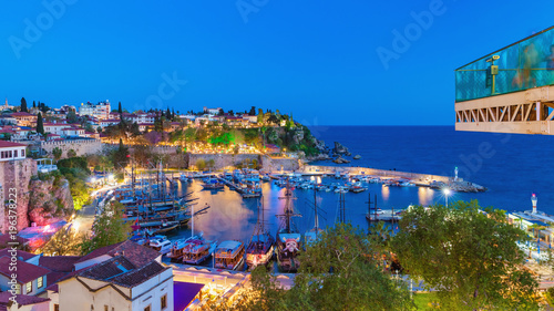 © IgorZh, Fototapeta premium Piękny zachód słońca, marina na starym mieście w dzielnicy Kaleici, Antalya, Turcja