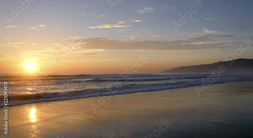 © VP, Naklejka premium Piękny zachód słońca na plaży Karon. Fala uderza w brzeg. Phuket, Tajlandia