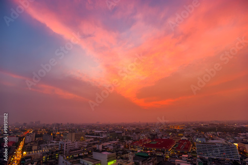 Naklejka premium Piękny zachód słońca pejzaż miejski w Bangkoku, Tajlandia