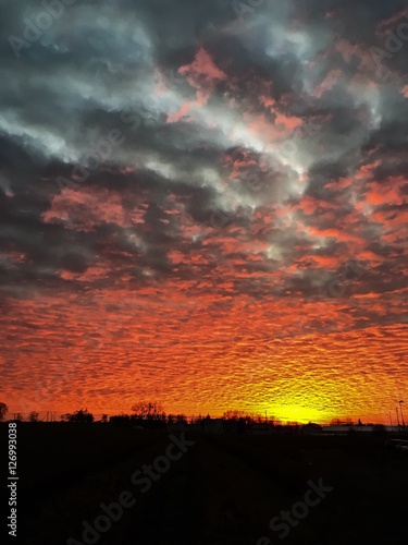 © blesz, Fototapeta premium piękny zachód słońca pomarańczowe niebo