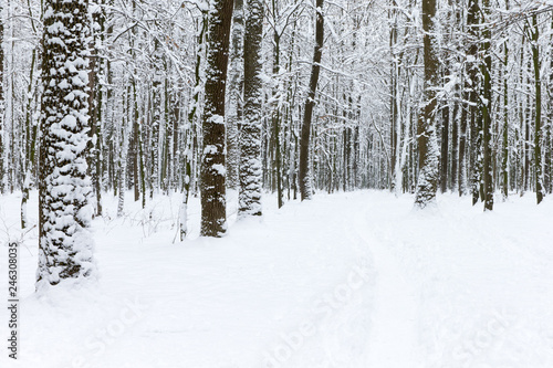 Fototapeta premium piękny zimowy las i droga