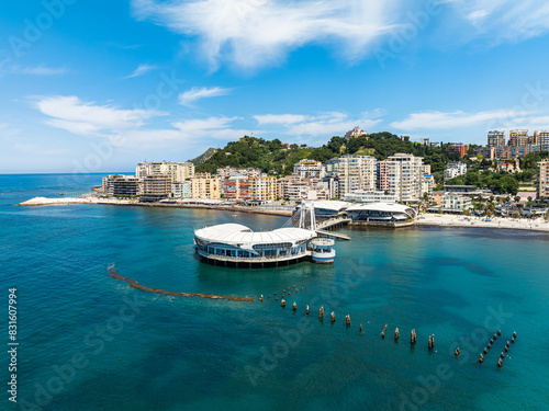 Fototapeta premium Pier and Promenade in Durres from a drone, Adriatic Sea, Albania, Europe
