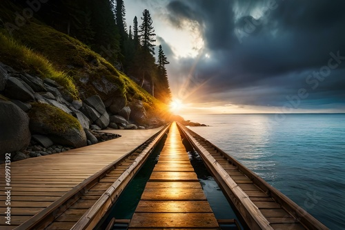 © Muzammil, Naklejka premium pier at sunset by AI generating