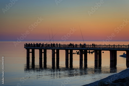 © Alexey Sizov, Fototapeta premium pier at sunset with fisherman