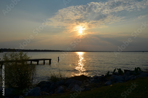 © luke p ferguson, Fototapeta premium pier at the Ross Barnett reservoir at sunset
