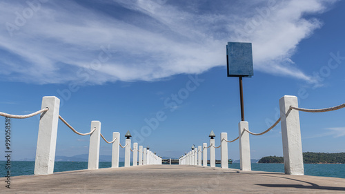 © Chalothorn, Obraz premium Pier bridge made of concrete with large rope railings on two sides